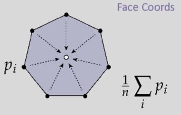 根据相邻的面重心边中点和原有顶点的位置插值计算新顶点的位置